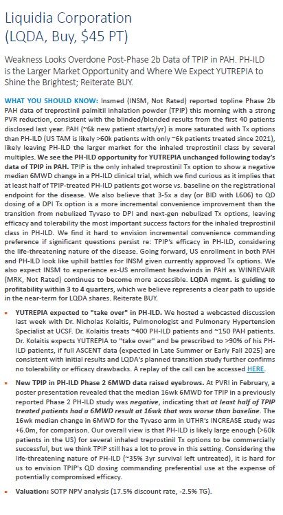 👉El dia siguiente se publicó que UTHR había decidido retirar la demanda contra el proceso de aprobación de Yutrepia, lo cual desató las sospechas de que la extensión de la exclusividad de Tyvaso hubiera sido la contrapartida de retirar la demanda contra la FDA (que estaba pendiente del pronunciamiento del Juez Bates). Aún así, esto implica que un tema judicial pendiente para LQDA se ha aclarado.