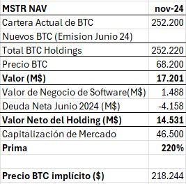 Mañana con la evolución de MSTR en bolsa actualizaremos los datos (BTC cotiza el sábado y domingo mientras que MSTR no)